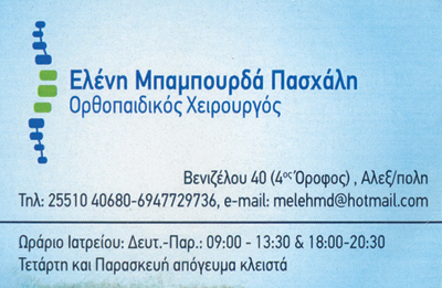 Χειρουργός Ορθοπεδικός παίδων & ενηλίκων, υποψήφιος διδάκτωρ Α.Π.Θ.
